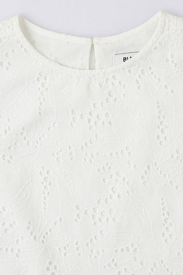 مزينة بنمط تطريز مخرم على كامل التصميم