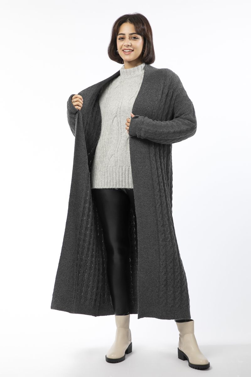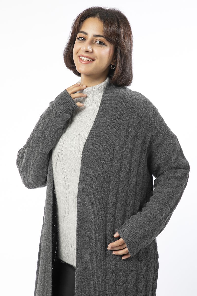 كارديغان نسائي محبوك بقصة طويلة