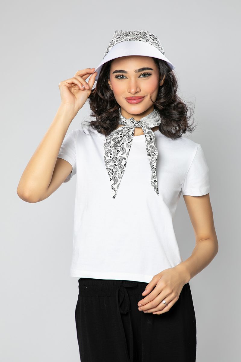 إكسسوار نسائي صيفي أنيق شال مع تفاصيل قبعة