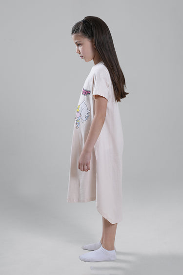 فستان منزلي بناتي مريح مصمم للاستخدام اليومي داخل المنزل. يتميز بأكمام قصيرة وقصة واسعة توفر راحة تامة وحرية حركة. مناسب للاسترخاء، اللبس المنزلي أو كملابس نوم بخامة خفيفة ومريحة.