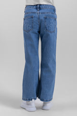 جينز بنات بقصة واسعة مع تفاصيل تطريز أنيقة. يتميز بتصميم عملي مع جيوب وقصة مريحة، مناسب للاستخدام اليومي والإطلالات الكاجوال.