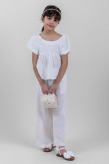 بنطلون بنات بتصميم منسوج وقصة واسعة مع خصر مطاطي لراحة أفضل. يوفر حرية حركة وقصة مريحة تناسب الاستخدام اليومي أو الإطلالات الأنيقة.