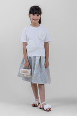 تنورة بنات بقصة واسعة مع خصر منظم يمنح ثباتًا ومظهرًا أنيقًا. مزينة بنقشة فراشات ناعمة تضيف لمسة جذابة دون مبالغة، مع إغلاق خلفي مخفي لمظهر مرتب. مناسبة للمناسبات الخاصة والإطلالات الأنيقة.