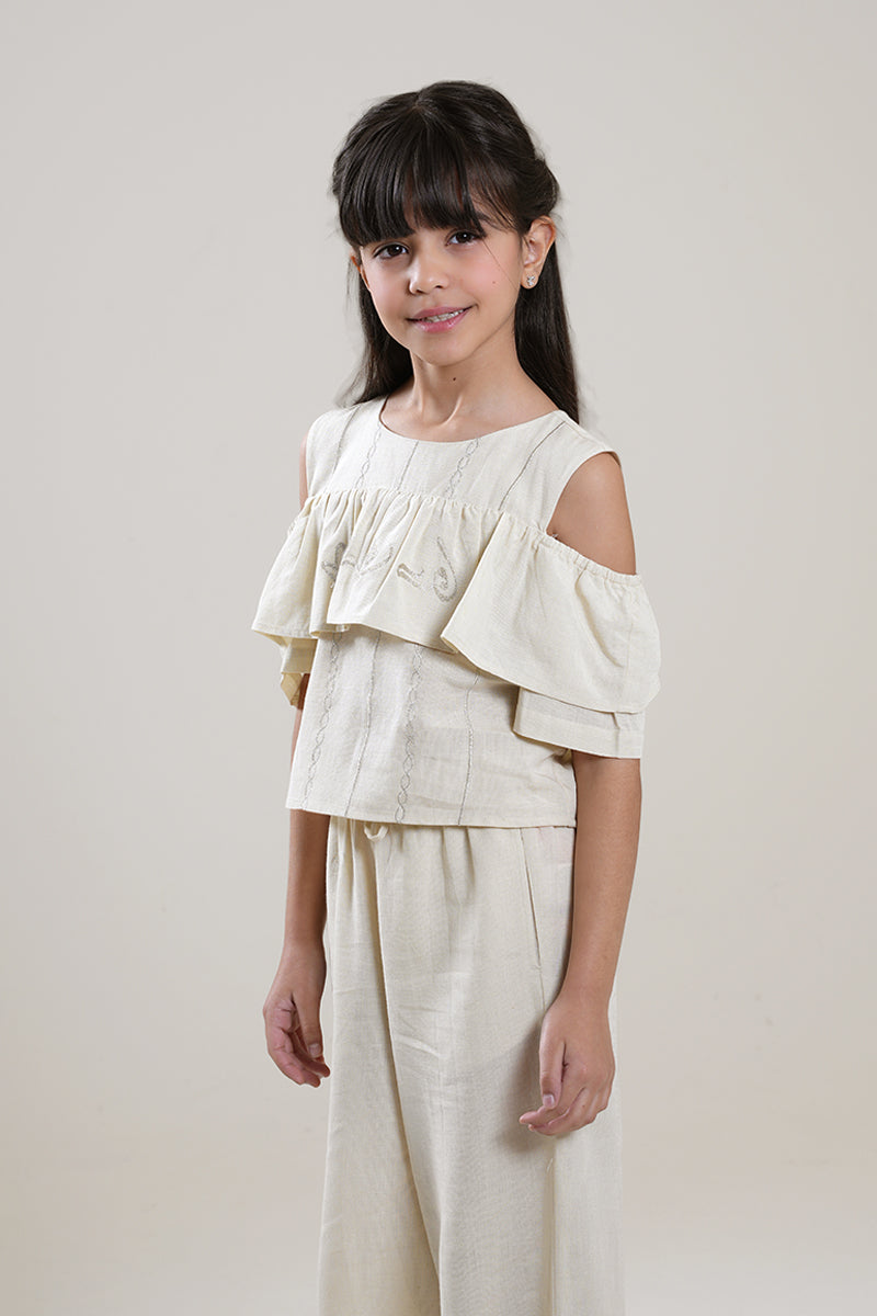 بلوزة بناتي بتصميم أكتاف مفتوحة مع كشكش