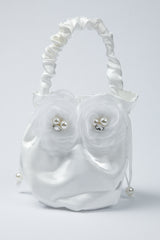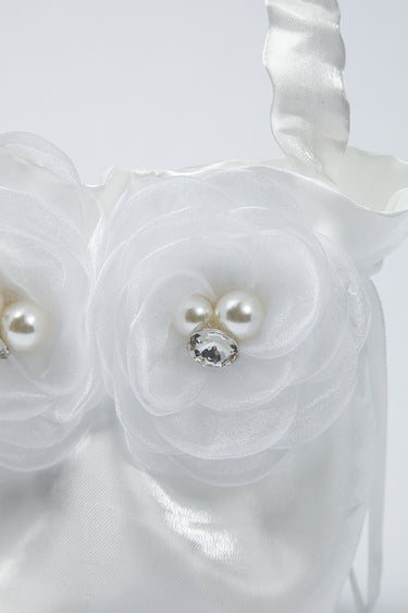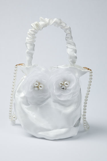 حقيبة صغيرة مصنوعة من قماش الساتان الناعم بتصميم مزين بتفاصيل ورود ناعمة ولمسات لؤلؤ تضيف اناقة راقية تصميم خفيف ومريح للحمل مزودة بمقبض علوي وحزام لؤلؤ قابل للاستخدام على الكتف او بشكل جانبي حجم عملي يناسب حمل الاساسيات الصغيرة مثالية للمناسبات والاحتفالات والاطلالات الرسمية قطعة مميزة تضيف لمسة فخامة وانثوية لاي تنسيق