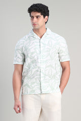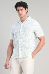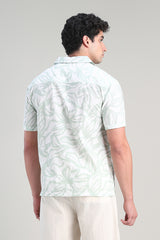 قميص بأكمام قصيرة بتصميم مريح وياقة مفتوحة يتميز بنقشة عصرية تغطي كامل القطعة يمنح مظهرا أنيقا وبسيطا مع إحساس خفيف وراحة في الارتداء وسهل التنسيق