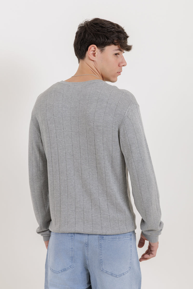 كنزة رجالي مصنوعة من قماش محبوك ناعم ومريح مناسب للاستخدام اليومي. تتميز بياقة دائرية وتصميم مضلع أنيق يمنح مظهراً عصرياً وبسيطاً. تأتي بقصة مريحة مع أساور وحافة سفلية مضلعة لثبات أفضل وسهولة في التنسيق. مثالية للإطلالات الكاجوال وأيام العمل والأجواء المعتدلة إلى الباردة.