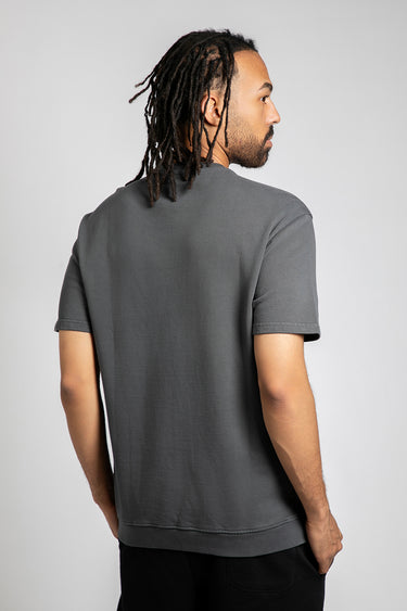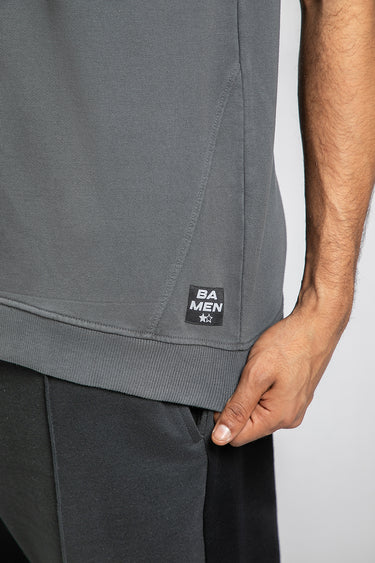 تيشيرت رجالي كاجوال بلون موحد – بياقة دائرية مع تفاصيل مضلعة على الأطراف، أكمام قصيرة
