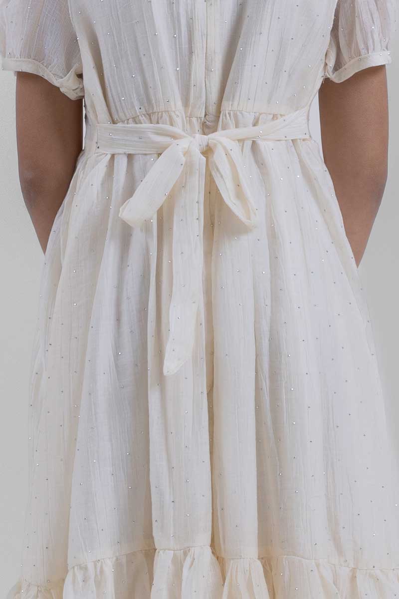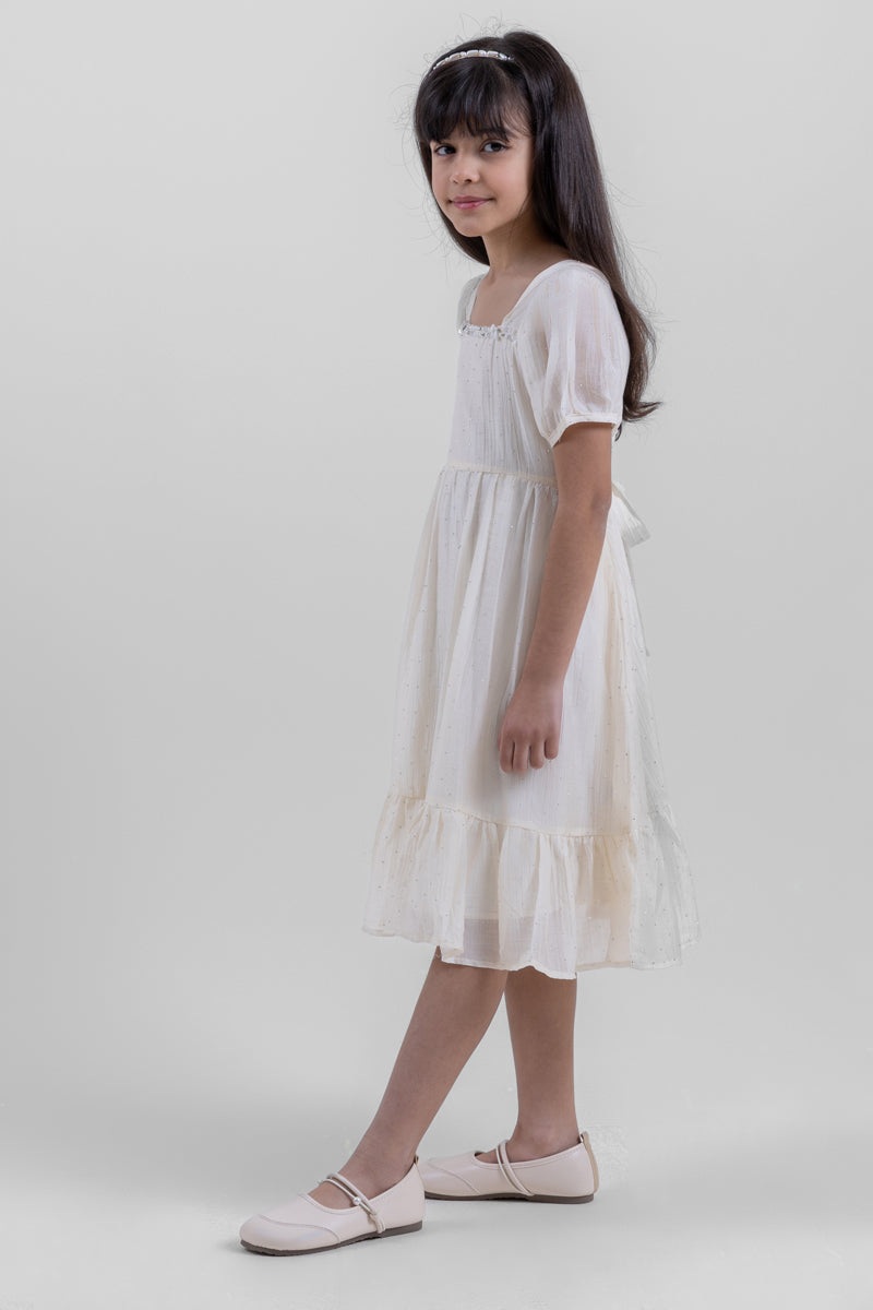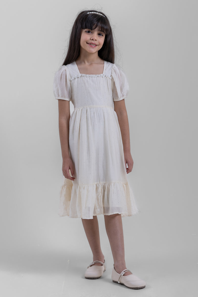 فستان بناتي ناعم بطبقات وأكمام منفوخة