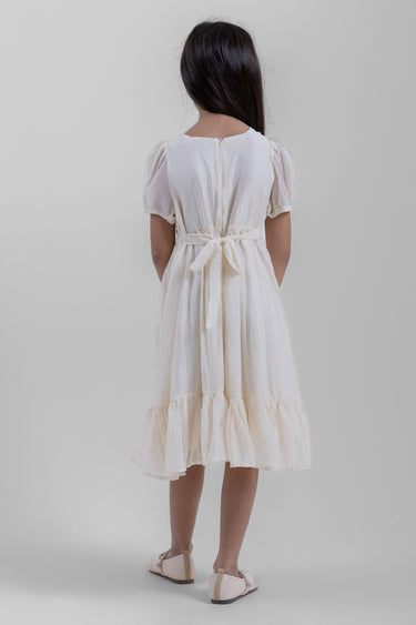 فستان بناتي أنيق بتصميم ناعم يناسب المناسبات الخاصة والإطلالات اليومية الراقية. يتميز بأكمام منفوخة، خصر محدد بخياطة ناعمة، وتنورة بطبقات تضيف حركة جميلة وأناقة واضحة. مزود برباط خلفي لملاءمة أفضل، ليجمع بين الراحة والمظهر الأنيق للحفلات والمناسبات العائلية.