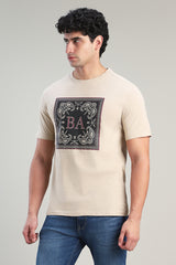 تيشيرت رجالي بتصميم مطبوع وقصة مريحة واكمام قصيرة وخامة مريحة للاستخدام اليومي والاطلالات الكاجوال