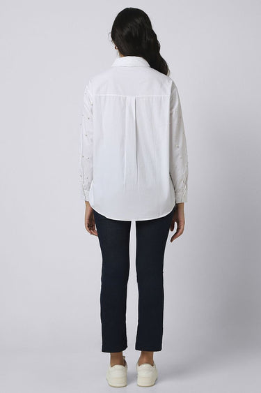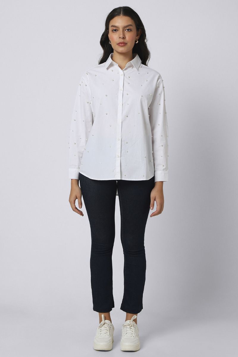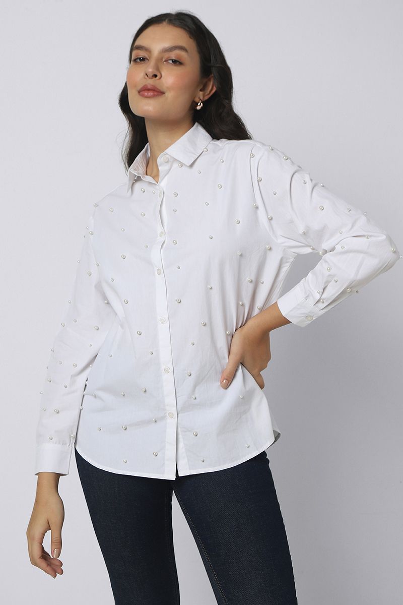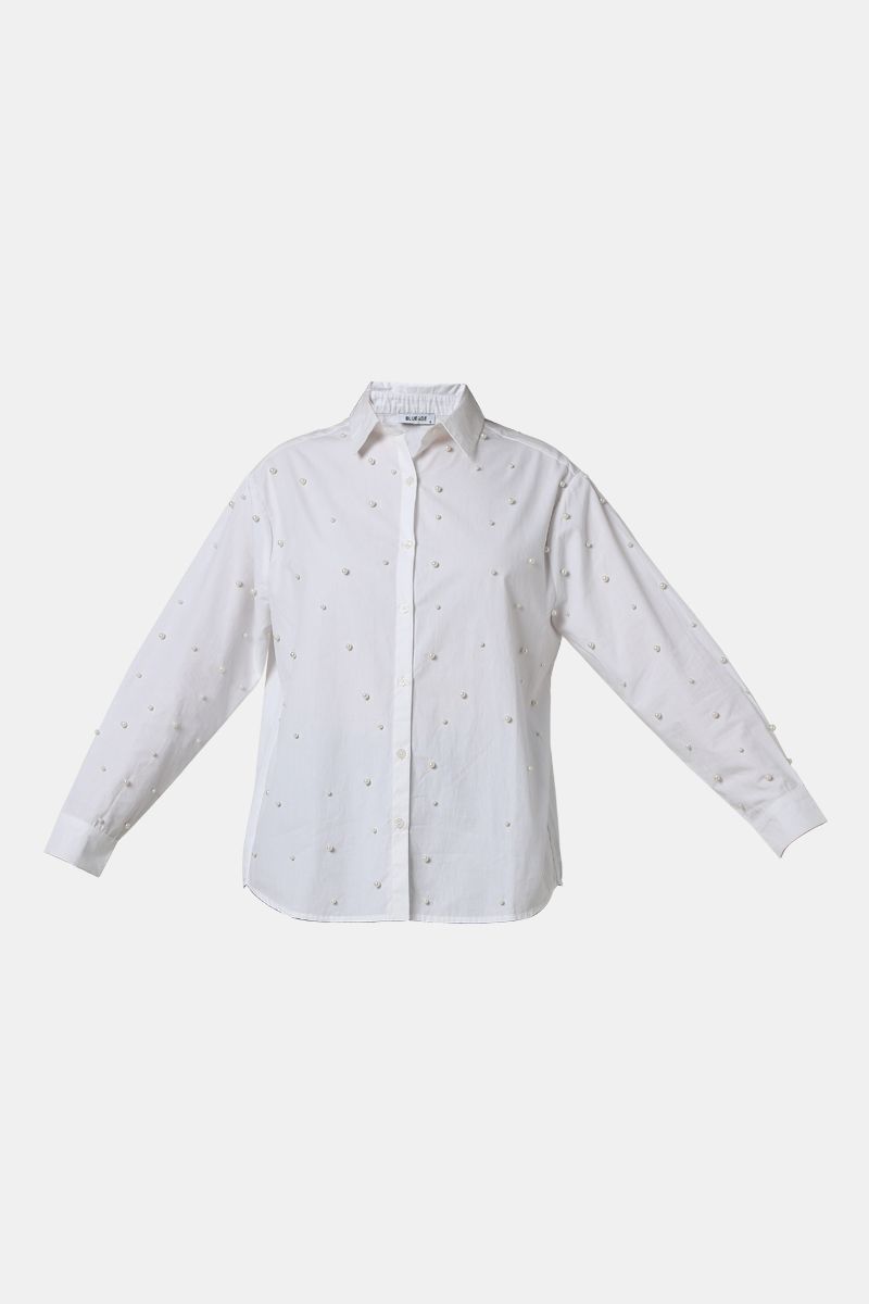 مزين بتفاصيل خرز لؤلؤي الشكل من الجهة الأمامية وعلى الأكمام