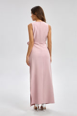 فستان طويل بدون أكمام بتفاصيل منسدلة