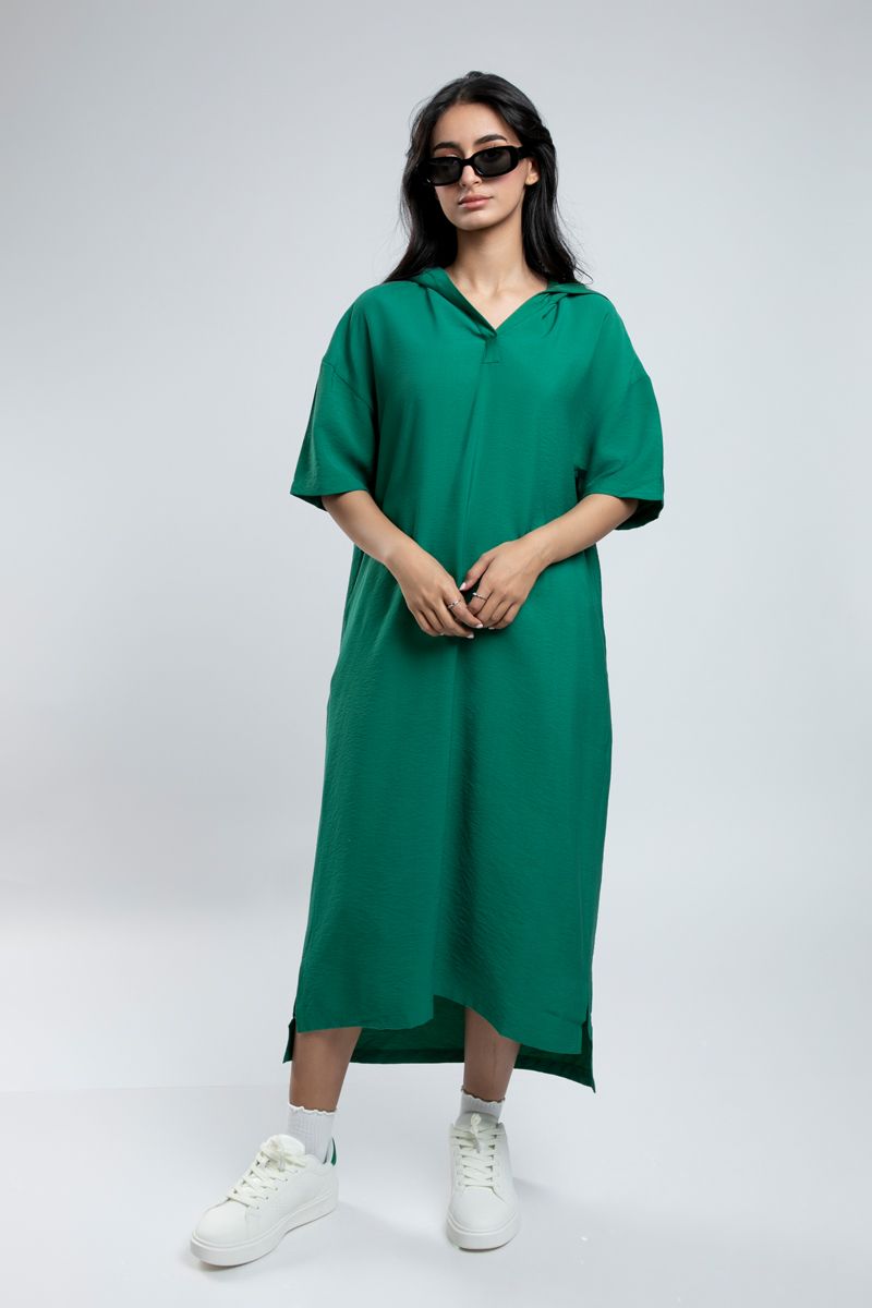 استمتعي بالراحة والأناقة البسيطة مع هذا الفستان الطويل الهاديء بتصميم هودي نسائي انسيابي. يأتي بلون سادة وياقة هودي مرفقة وشقوق جانبية لتوفير حرية الحركة. مثالي لأيام الاسترخاء عندما تريدين الراحة مع لمسة من الأناقة العصرية.