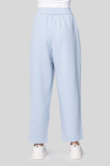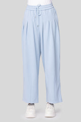 بنطلون واسع بقصة مريحة يتميز بكسرات أمامية تضيف لمسة أنيقة وعصرية مصنوع من قماش ناعم مع خصر مطاطي ورباط لتعديل المقاس مثالي للإطلالات الكاجوال والعملية