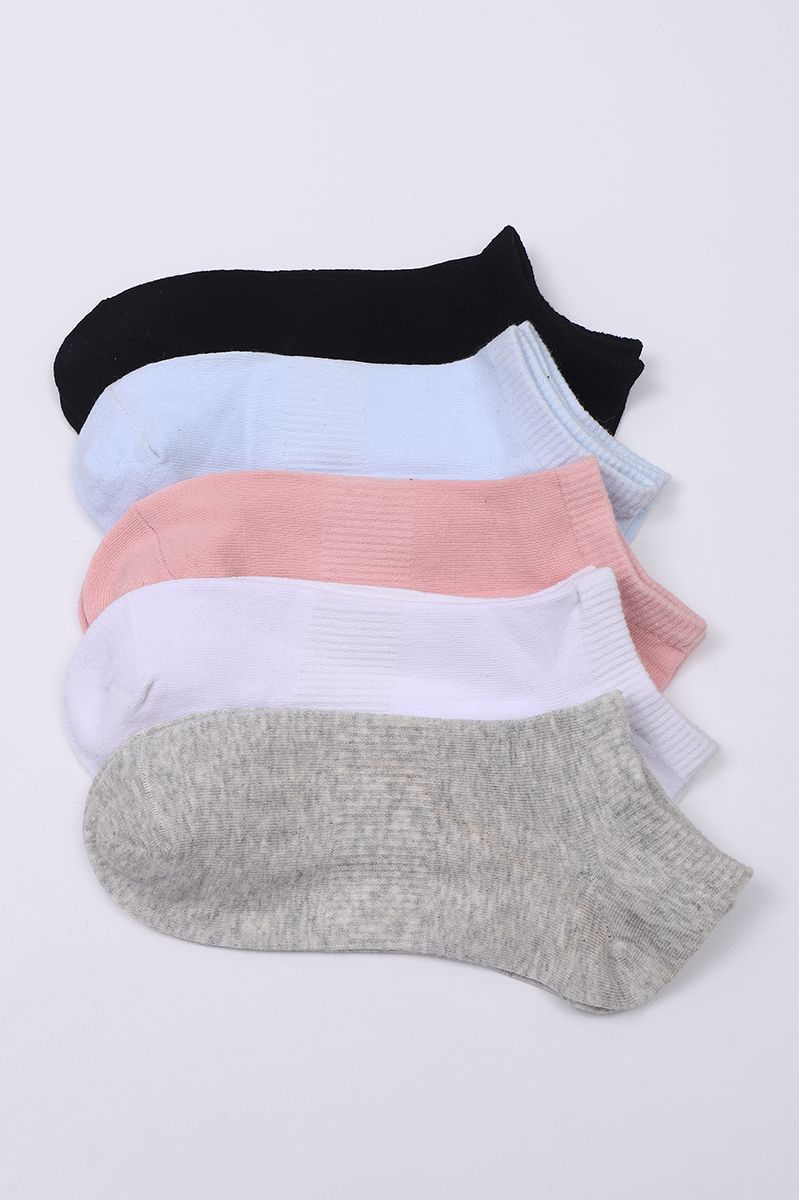 مجموعة جوارب بتصميم طول الكاحل مكونة من 5 أزواج بنمط لون موحد سادة كل زوج بلون مختلف، مزينة بتفاصيل منمطة