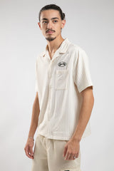 استلهم أجواء الجامعات الكلاسيكية مع هذا القميص الرجالي قصير الأكمام بأسلوب Varsity. يتميز بنقشة مخططة، رقعة تطريز صغيرة على الصدر، وجيب أمامي، مع أزرار للإغلاق من الأمام وياقة كلاسيكية. قطعة تجمع بين الأناقة والراحة بأسلوب شبابي عصري.
