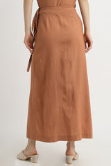 استمتعي بأناقة مريحة مع هذه التنورة الماكسي الملفوفة ذات اللون الموحد وحزام رباط يبرز الخصر بشكل أنيق. مصممة للراحة والأناقة، تناسب الإطلالات الكاجوال والمناسبات الرسمية على حد سواء.