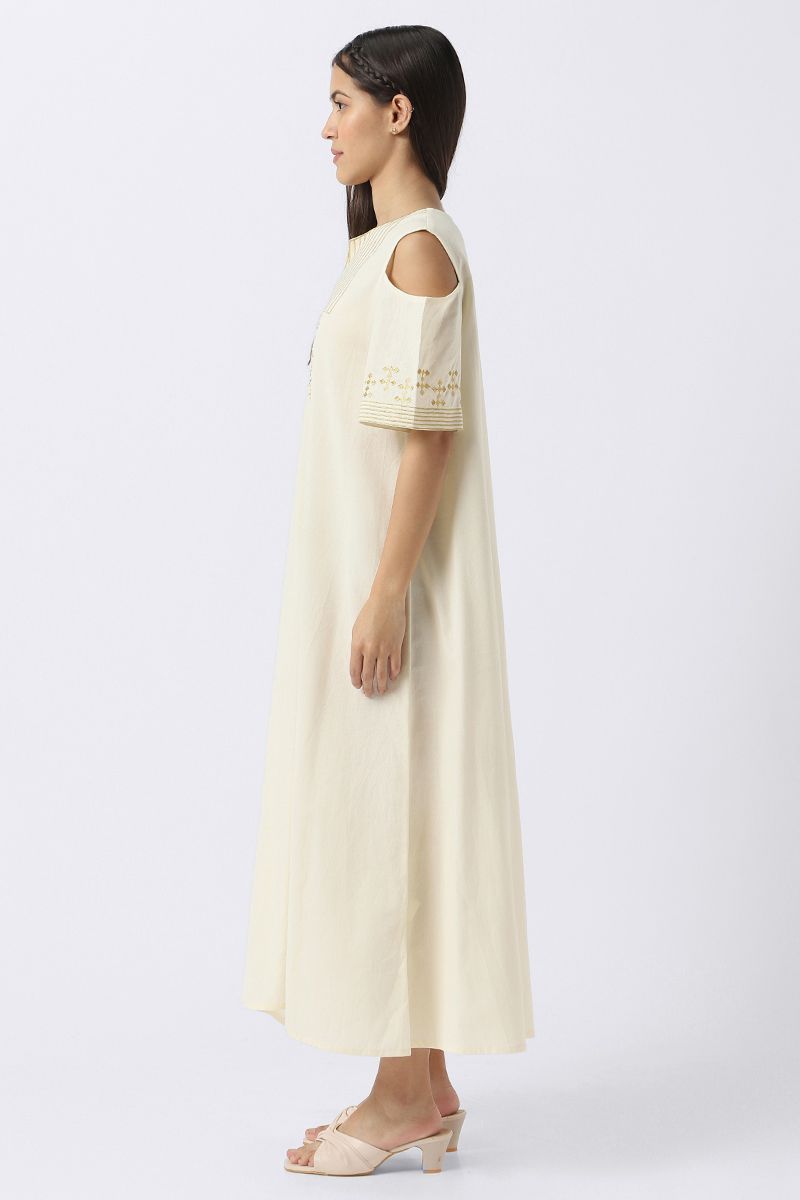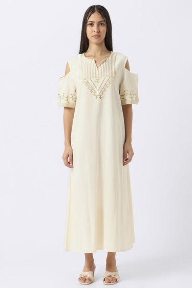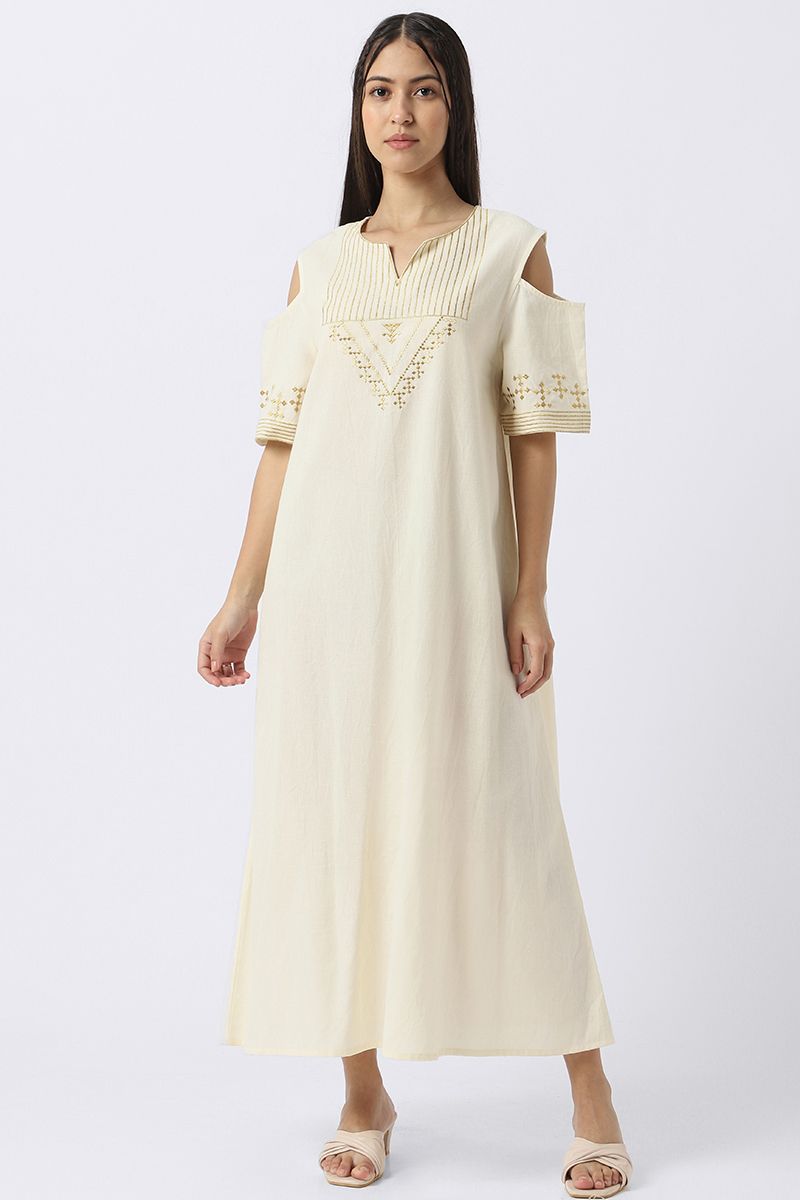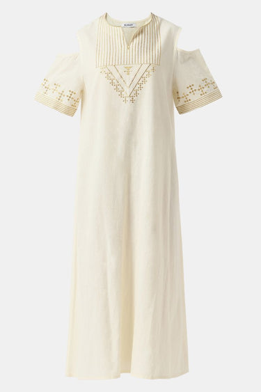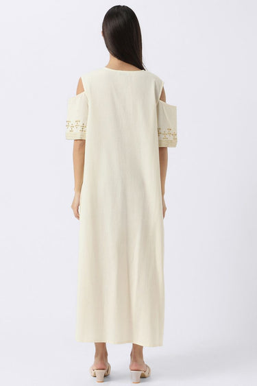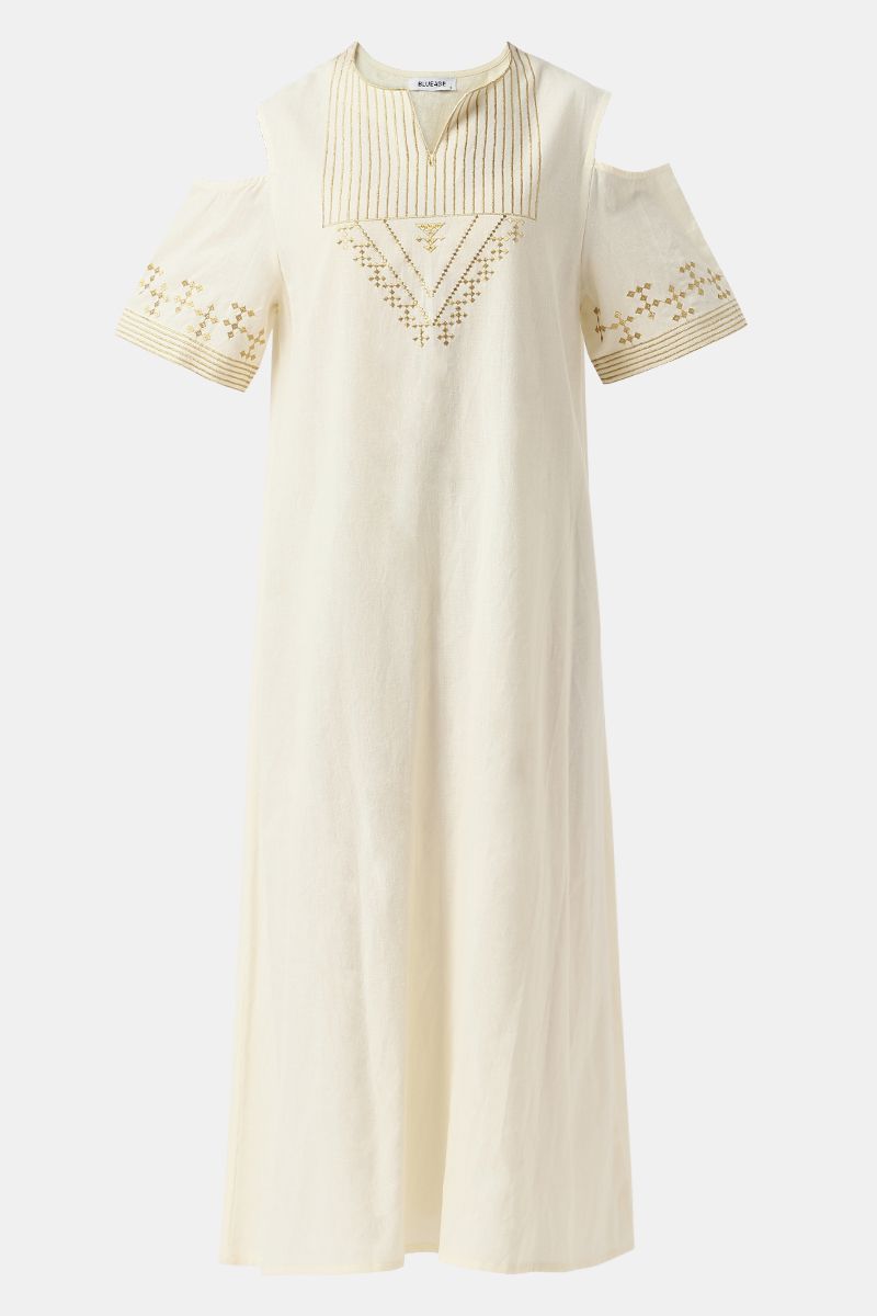 جلابية نسائية طويلة بتطريز وأكتاف مفتوحة