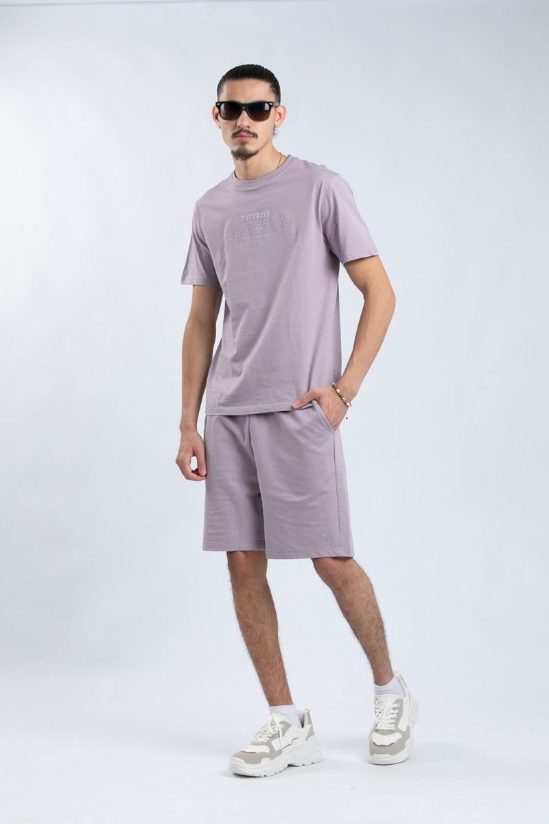 شورت مستدام للجنسين مع طبعة من نفس اللون