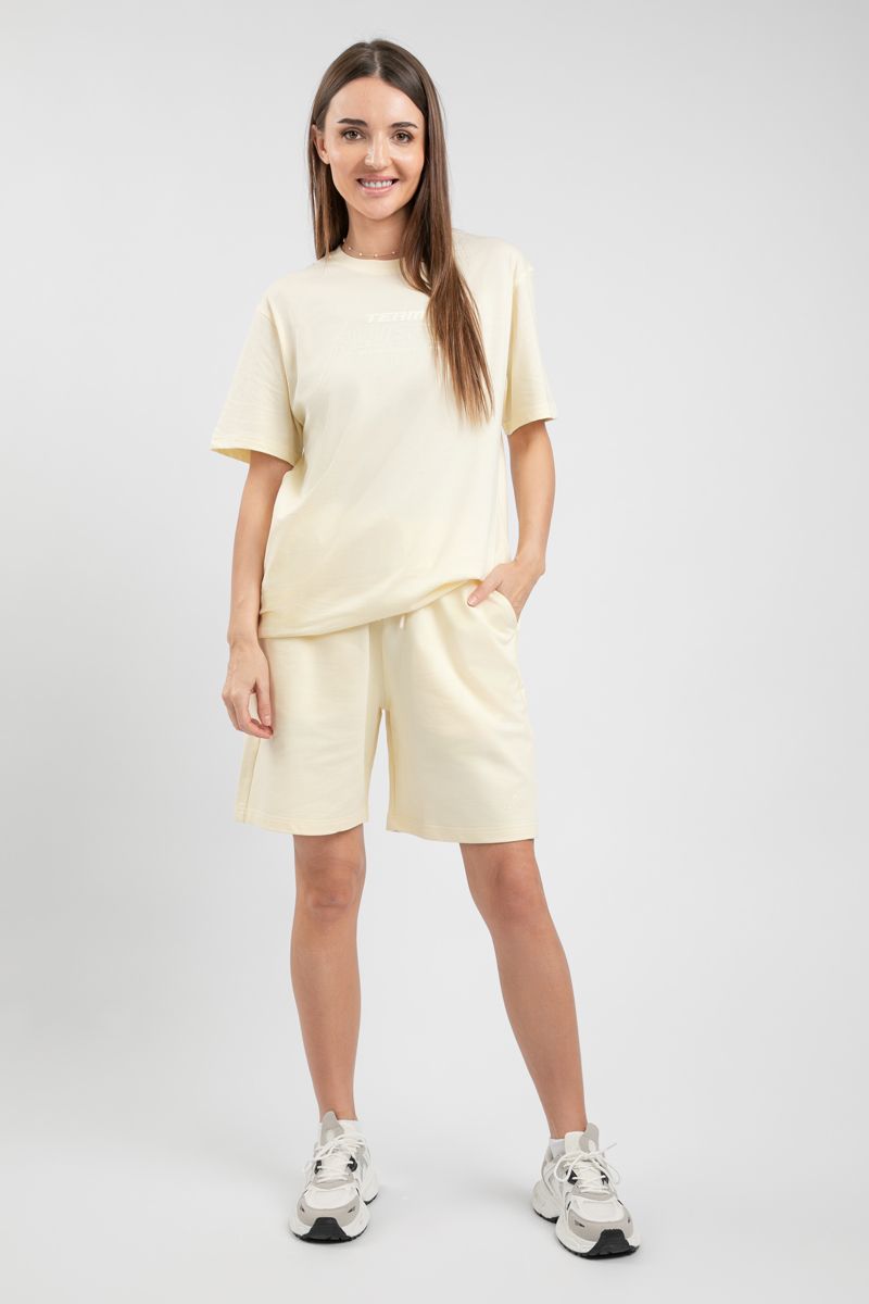 تم تصميم هذا الشورت المستدام للجنسين من مواد صديقة للبيئة، ليقدم مظهرًا أنيقًا وبسيطًا بلون موحد وطبعة بلون متجانس على إحدى الأرجل. يجمع بين الراحة والعملية بفضل الجيوب الأمامية والخلفية. كما يحتوي على خصر مطاطي مع حبل شد قابل للتعديل لضمان ملاءمة مثالية طوال اليوم.