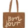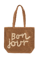 ارتقي بإطلالات الصيف مع هذه الحقيبة المنسوجة الساحرة المصممة لأيام الشاطئ والخروجات اليومية والمصنوعة من خامات عالية الجودة ومتينة وتتميز بنسيج مفتوح فريد يمنحها طابعاً طبيعياً أنيقاً مع مقابض مجدولة قوية توفر راحة في الحمل بينما تضيف الكتابة المطرزة على الجهة الأمامية لمسة مرحة وراقية تعزز من جاذبية التصميم وتأتي هذه الحقيبة بخفة عملية ومساحة واسعة تكفي لجميع الاحتياجات اليومية لتكون الخيار المثالي للسفر وإطلالات المنتجعات والتنزه في المدينة حيث تجمع بين الروح البوهيمية والجاذبية العصرية في قطعة واحدة