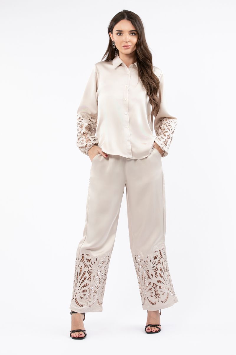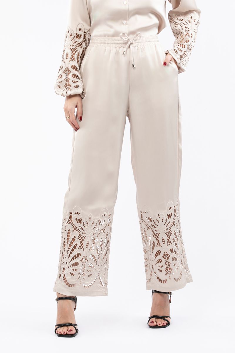 بنطلون نسائي فضفاض وبفتحات تطريز مخرمة