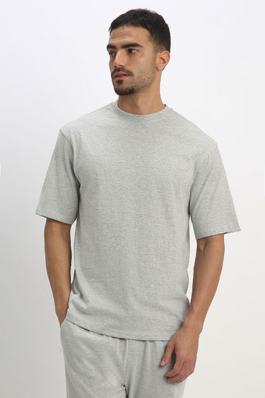 تيشيرت رجالي بأكمام قصيرة للبيت – لون موحد وياقة دائرية