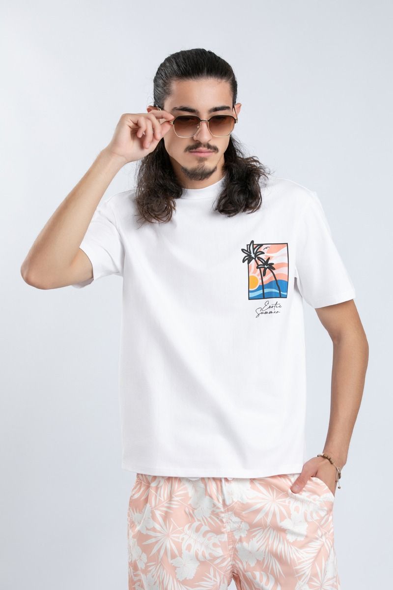 تيشيرت رجالي بأكمام قصيرة وطبعة أمامية وخلفية