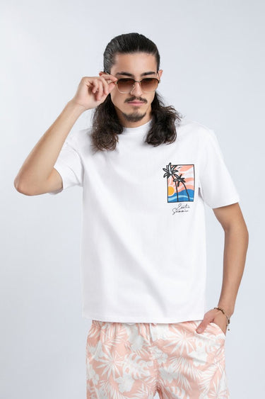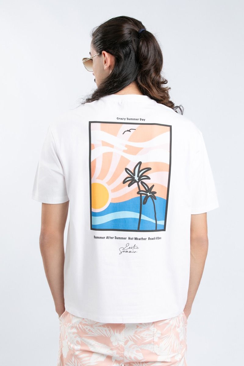 يتميز بطبعة جذابة على الجهتين الأمامية والخلفية تضيف لمسة من الشخصية، مع أكمام قصيرة وياقة مدورة لأسلوب عملي يناسب كل يوم