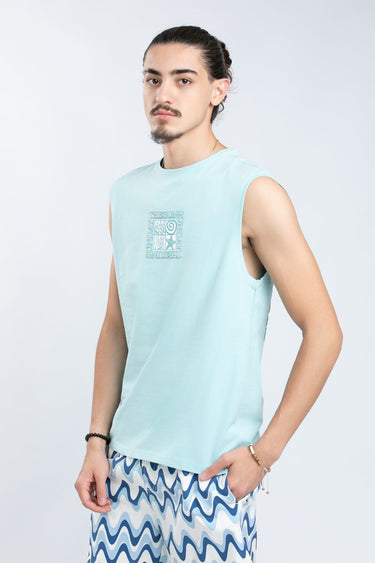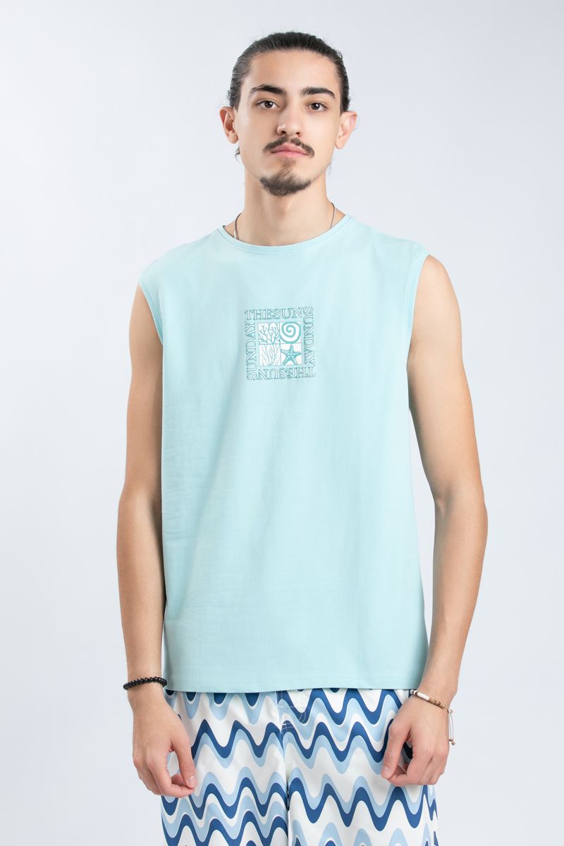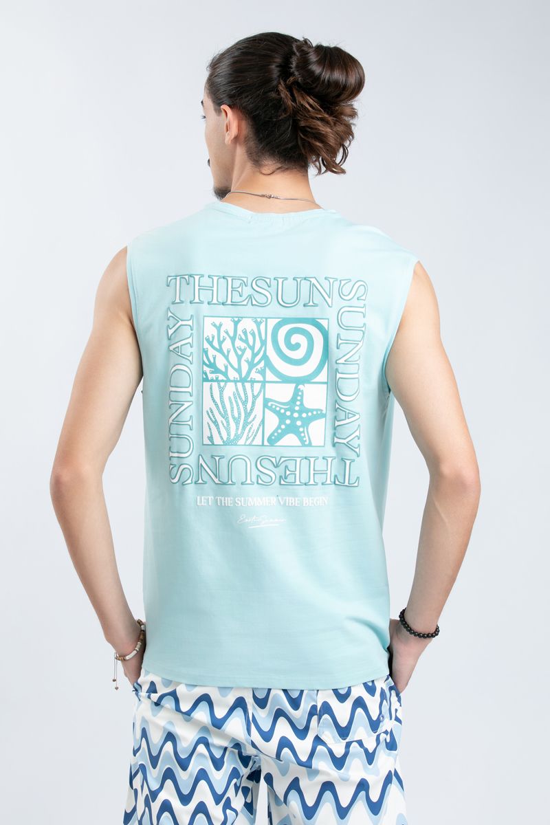 تيشيرت رجالي بدون أكمام بطبعات أمامية وخلفية