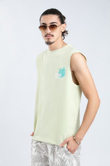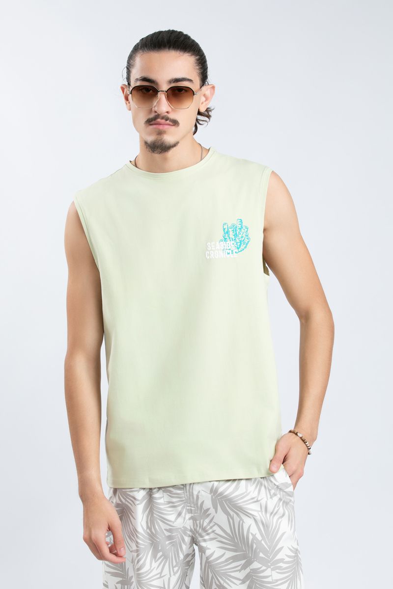 تيشيرت رجالي بدون أكمام بطبعات أمامية وخلفية