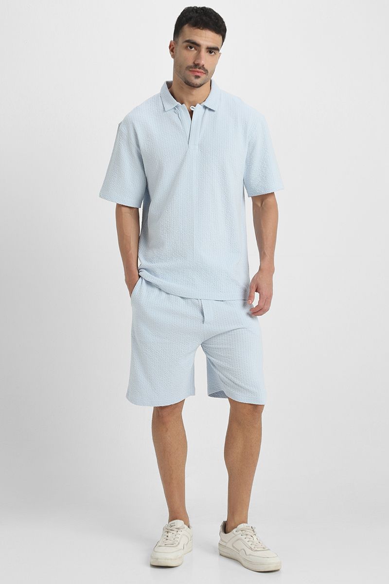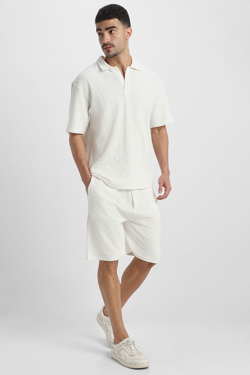 شورت رجالي صيفي لون سادة وقماش مزخرف