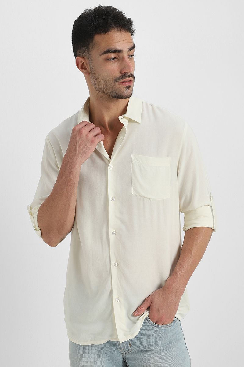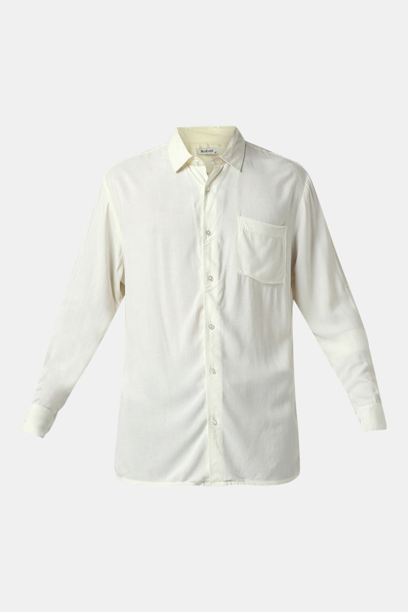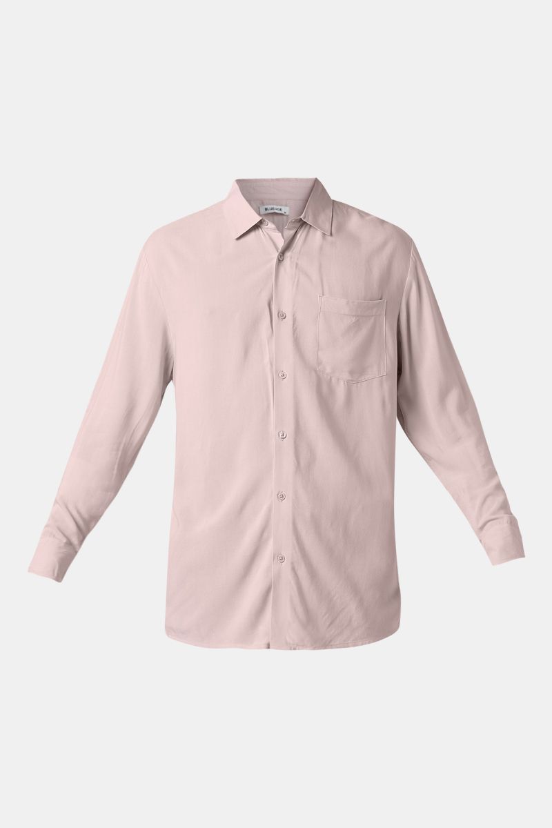 قميص رجالي صيفي بأكمام طويلة ولون موحد