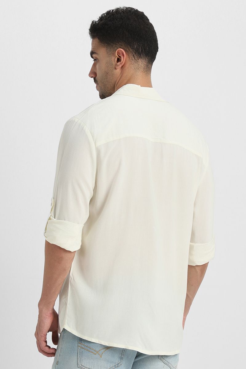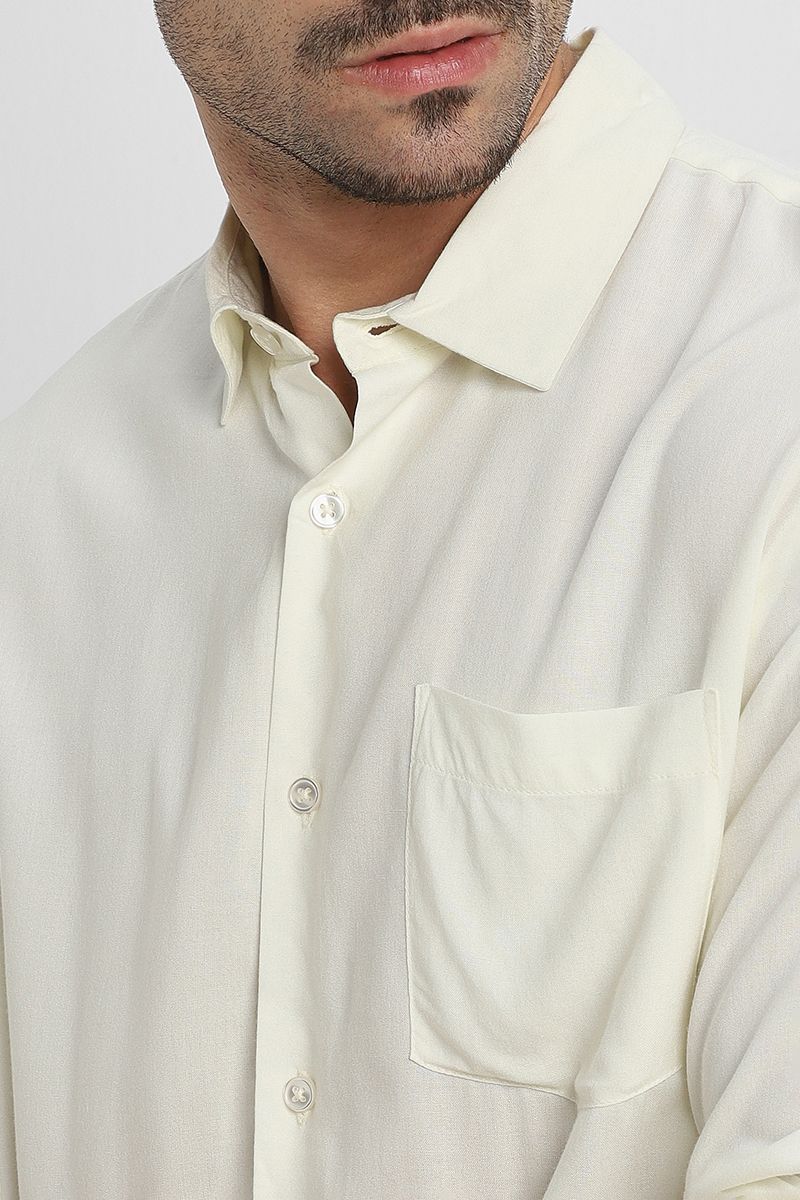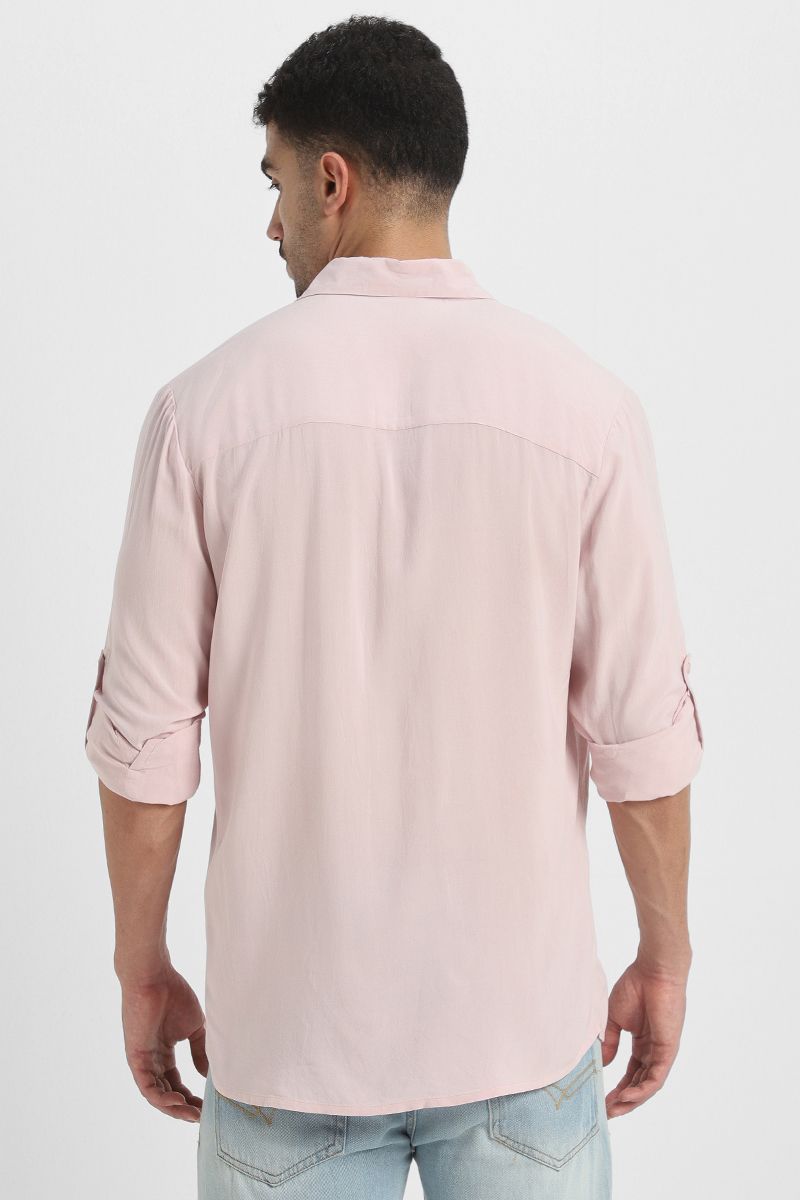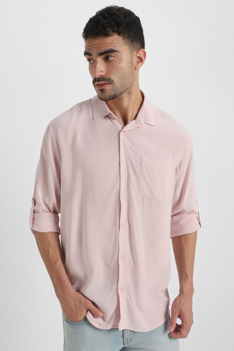 قميص رجالي صيفي بأكمام طويلة ولون موحد