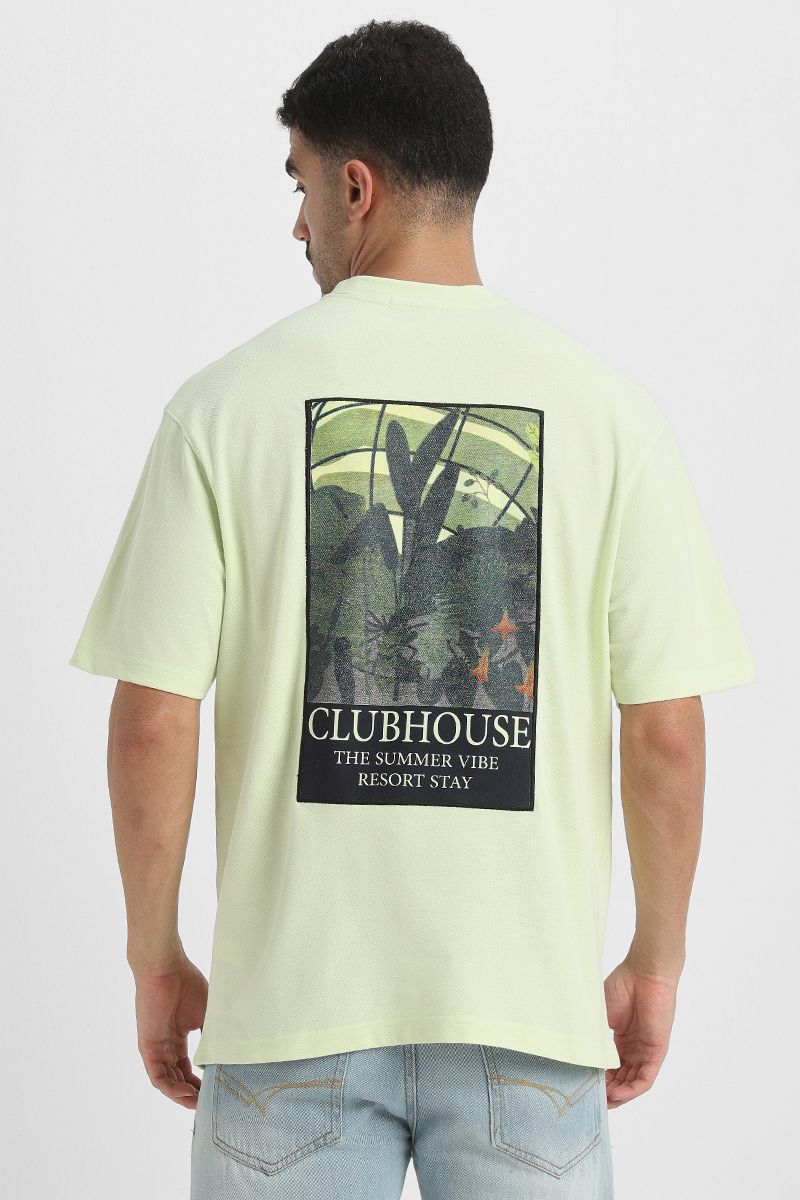 تيشيرت رجالي مع طبعة بلون متناسق على الجهة الأمامية وطبعة على الجهة الخلفية