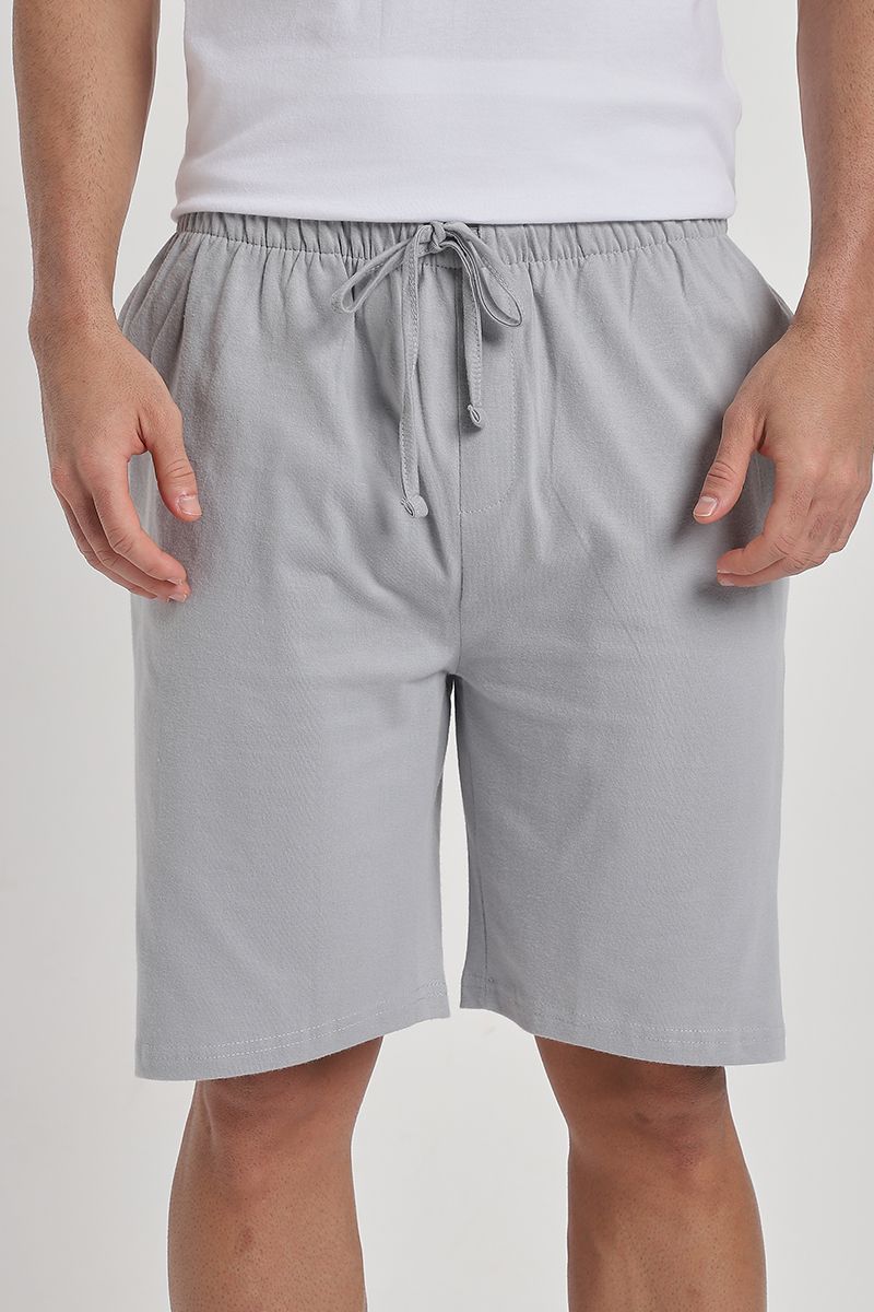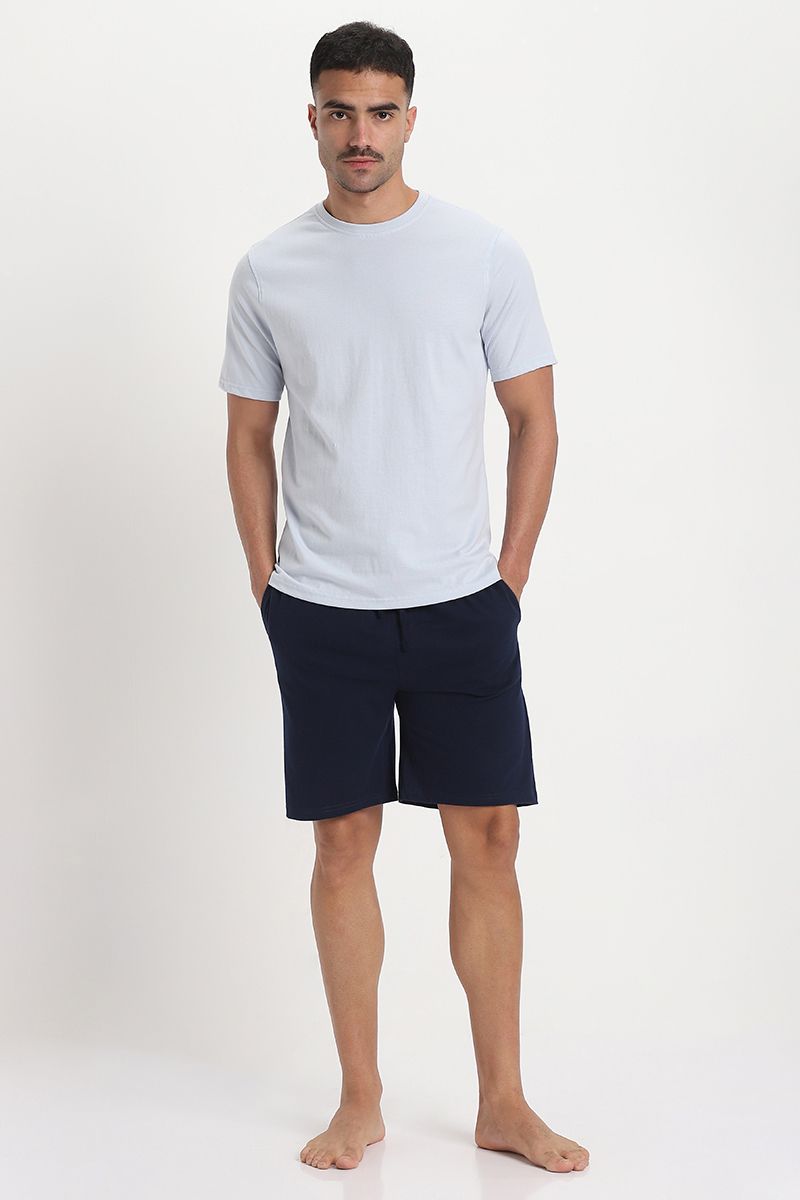 راحة تدوم طوال اليوم. طقم بيجاما رجالي يتكون من تيشيرت بأكمام قصيرة ولون سادة بتصميم بياقة دائرية، مع شورت مريح بلون سادة مزود بخصر مطاطي ورباط قابل للتعديل، بالإضافة إلى جيوب أمامية وخلفية. مثالي لأوقات الاسترخاء أو النوم.
