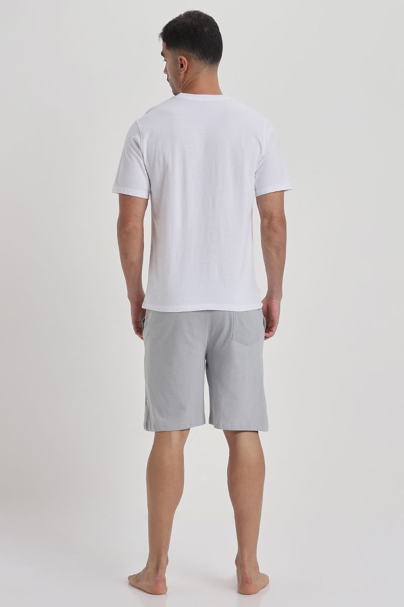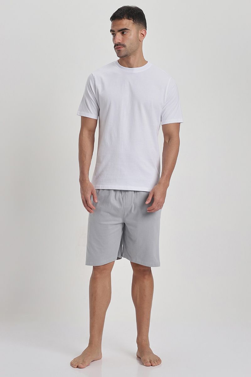 طقم بيجاما رجالي مكون من قطعتين – تيشيرت وشورت بلون سادة