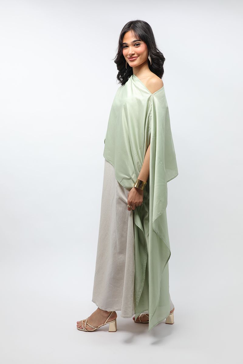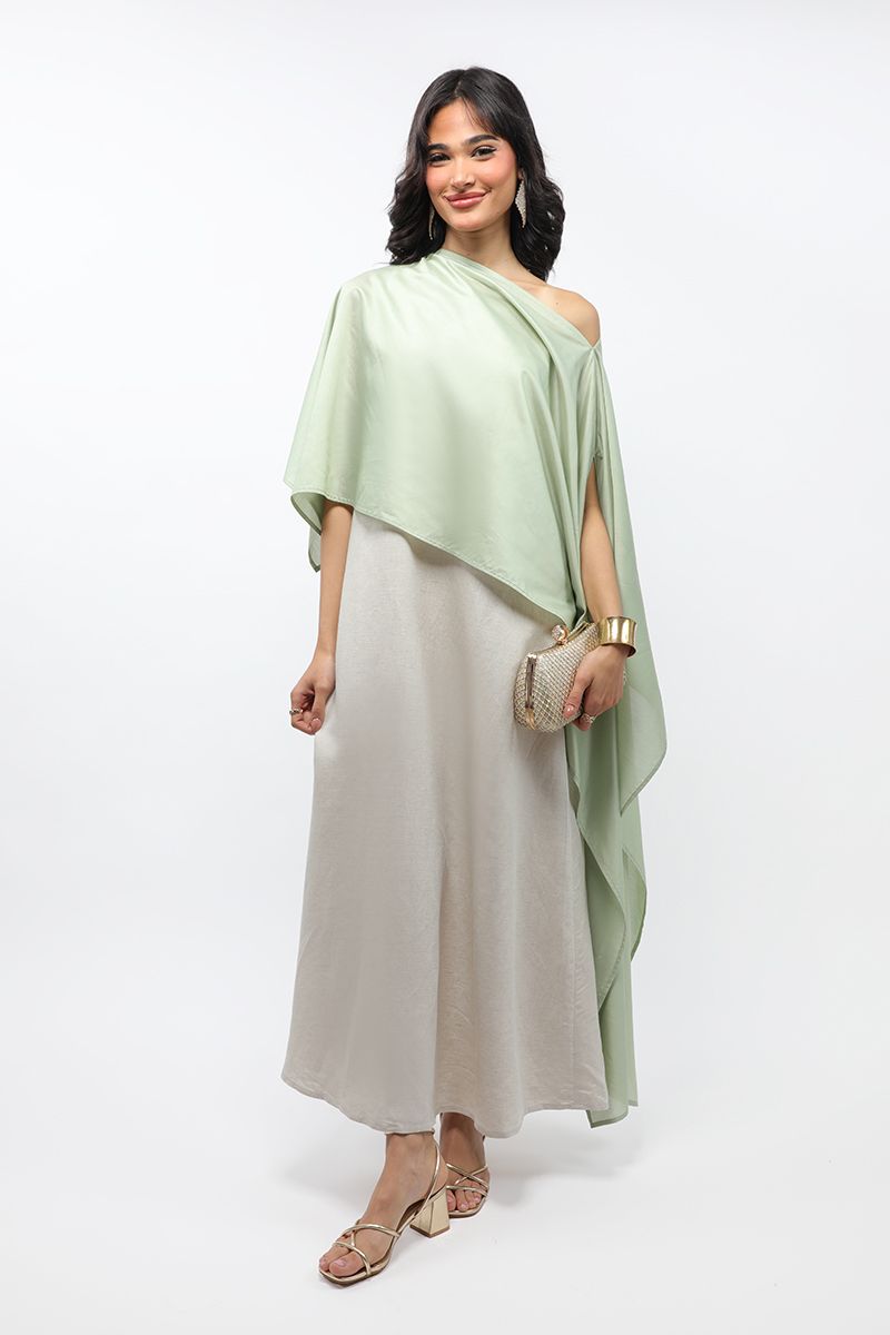 مزين بتفاصيل طبقة على شكل وشاح على الجزء العلوي