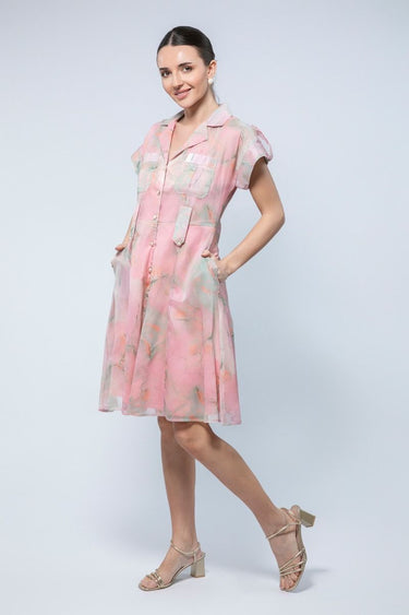 فستان نسائي بنمط طبعات وعقدة ملتوية