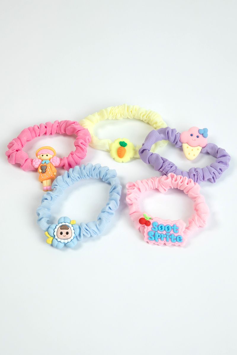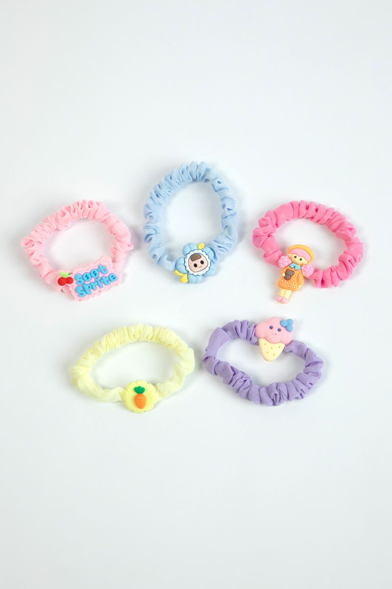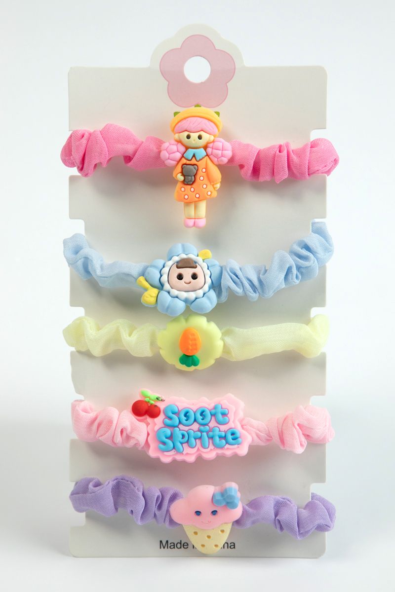 مجموعة لطيفة من خمس رباطات شعر قماشية تضيف لمسة مرحة لتسريحات الأطفال. مصنوعة من خامة ناعمة ومطاطية لتثبيت مريح لا يسبب شد أو تلف للشعر. مزينة بتعليقات ممتعة تجعلها مثالية للمدرسة أو المناسبات أو الاستخدام اليومي.