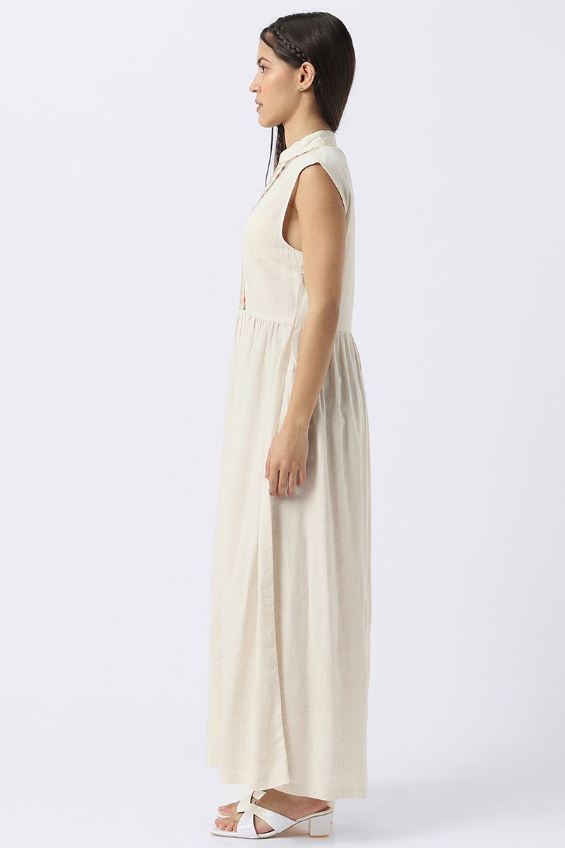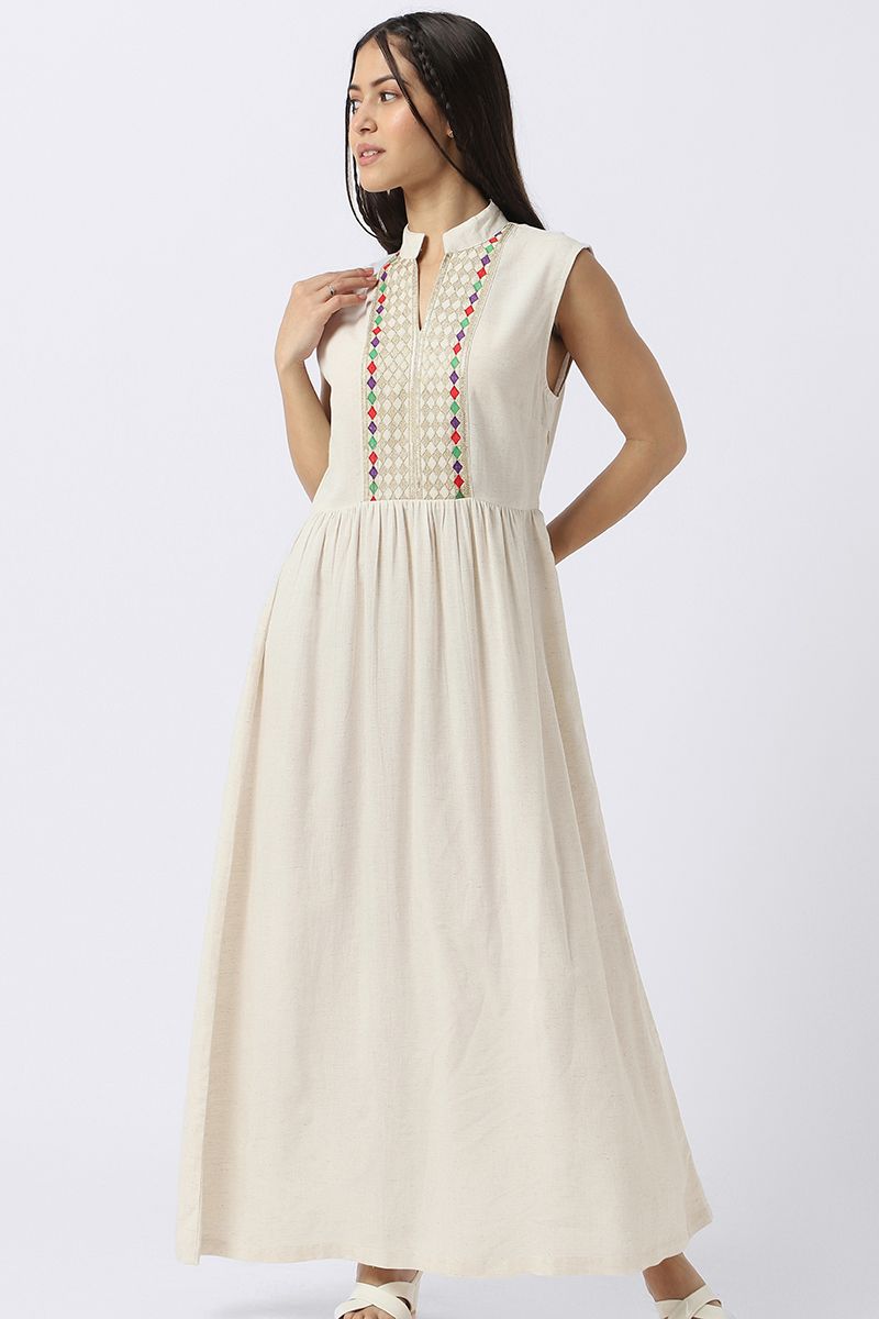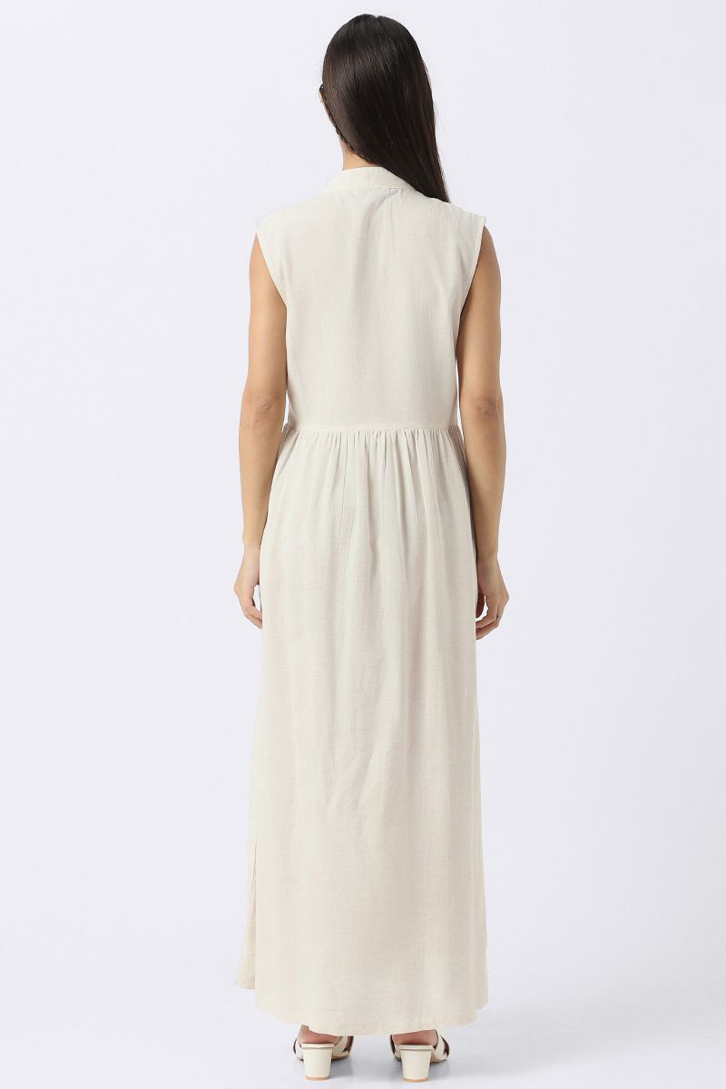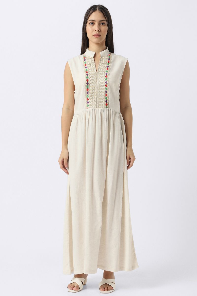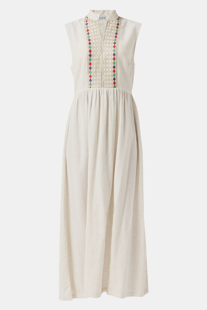 فستان نسائي ماكسي بدون أكمام وبتطريز