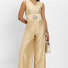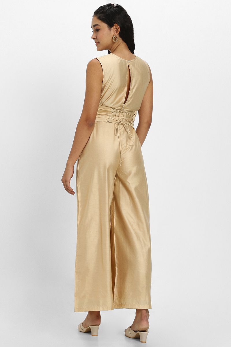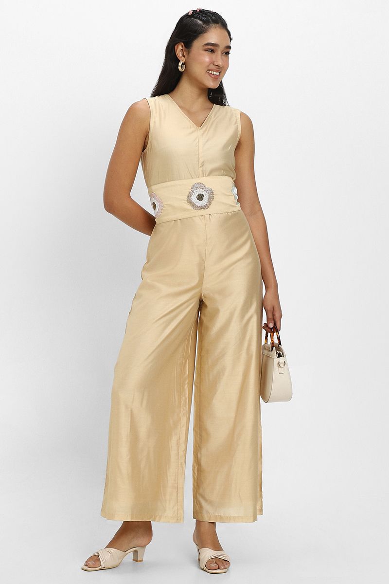 جمبسوت نسائي فاخر بدون أكمام بقصّة أرجل واسعة مع حزام مطرز بالخرز وتفاصيل ظهر مفتوح