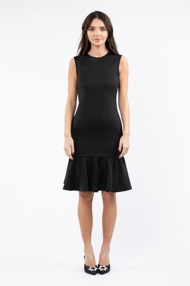 مزين بتفاصيل حجارة الراين على الأكتاف وتفاصيل كشكش على الجهة السفلية