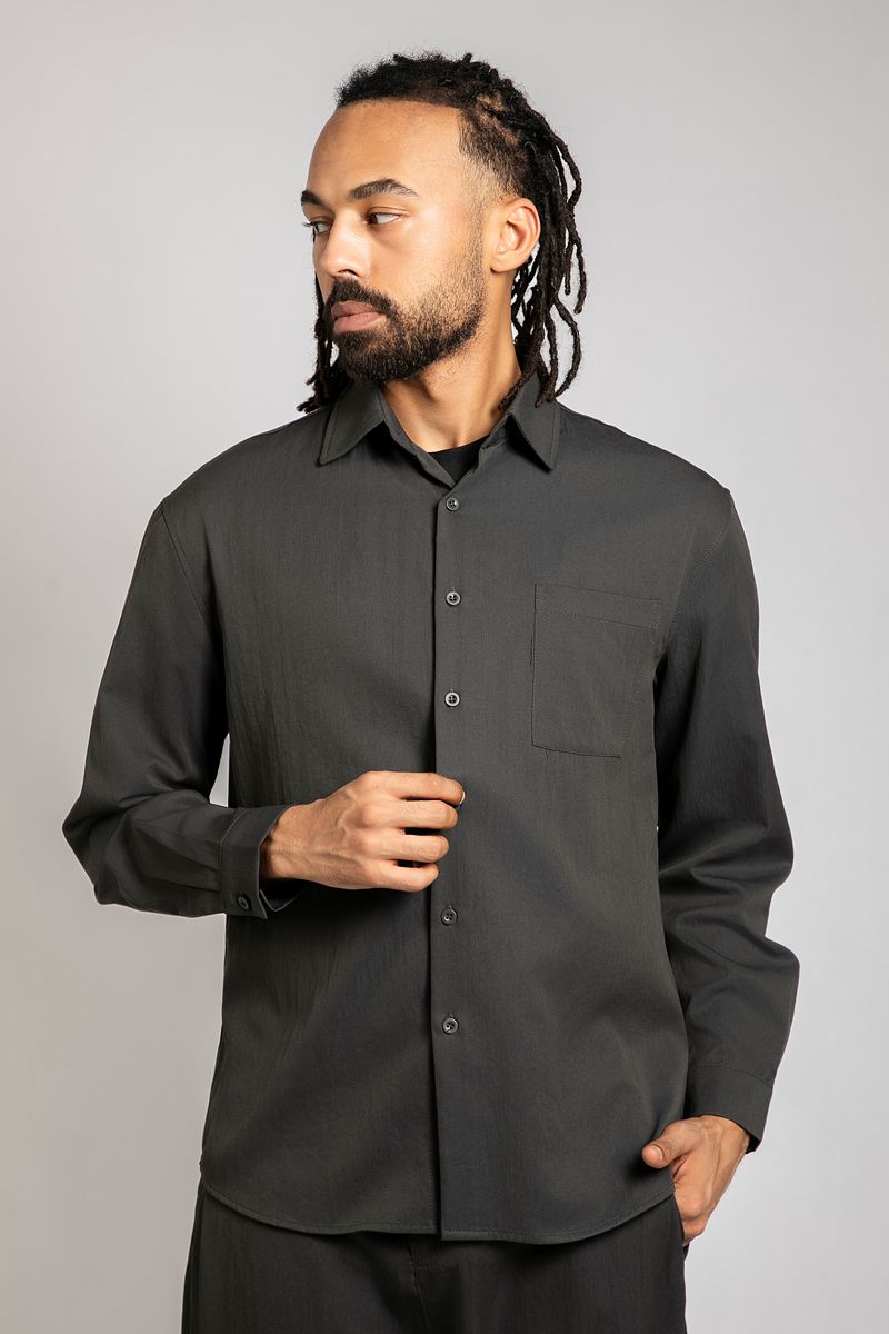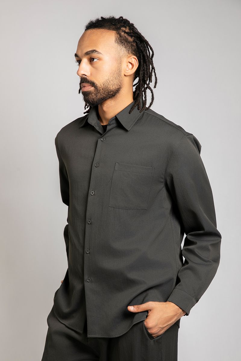 قميص رجالي أنيق بأزرار أمامية مصنوع من قماش خفيف بملمس مميز يمنح مظهرًا راقيًا وبسيطًا. يتميز بياقة كلاسيكية وجيب على الصدر وأكمام طويلة بأزرار عند المعصم لتفاصيل أنيقة. مناسب للإطلالات الكاجوال أو الرسمية البسيطة.