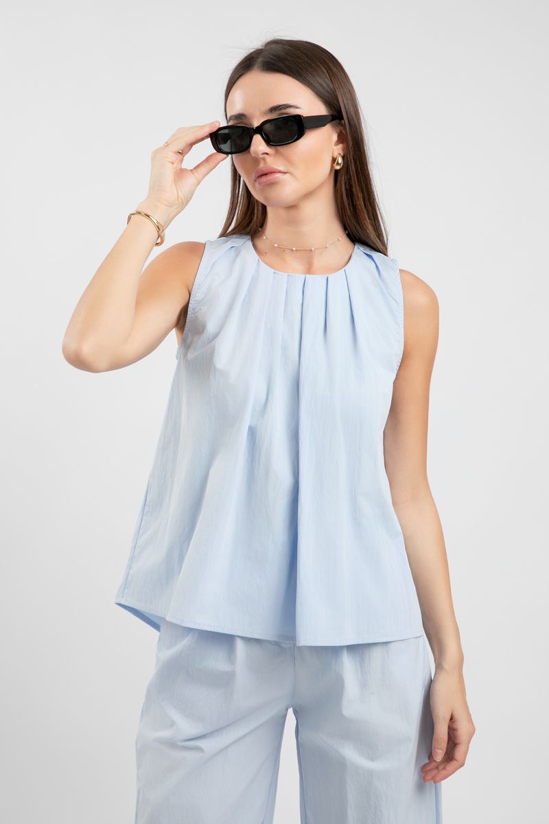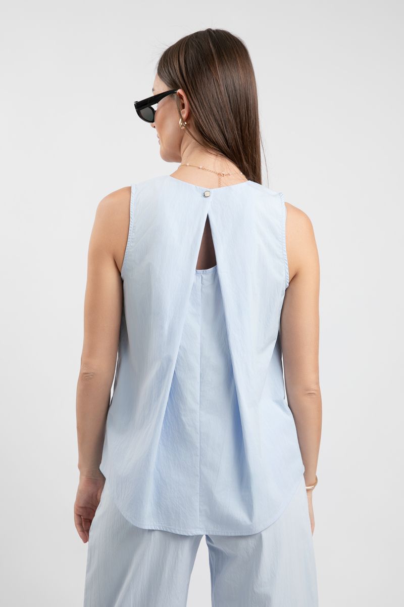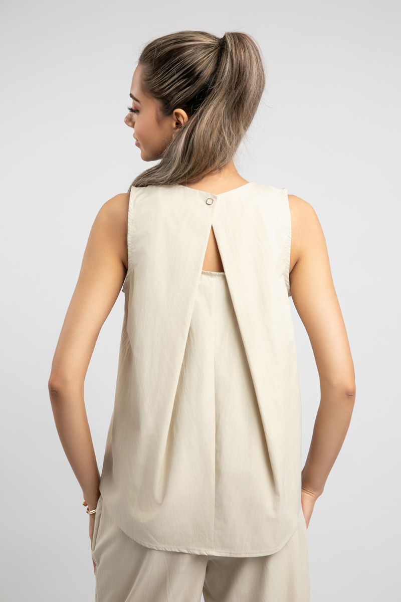 توب صيفي بلون سادة بدون أكمام مع تفاصيل خلفية