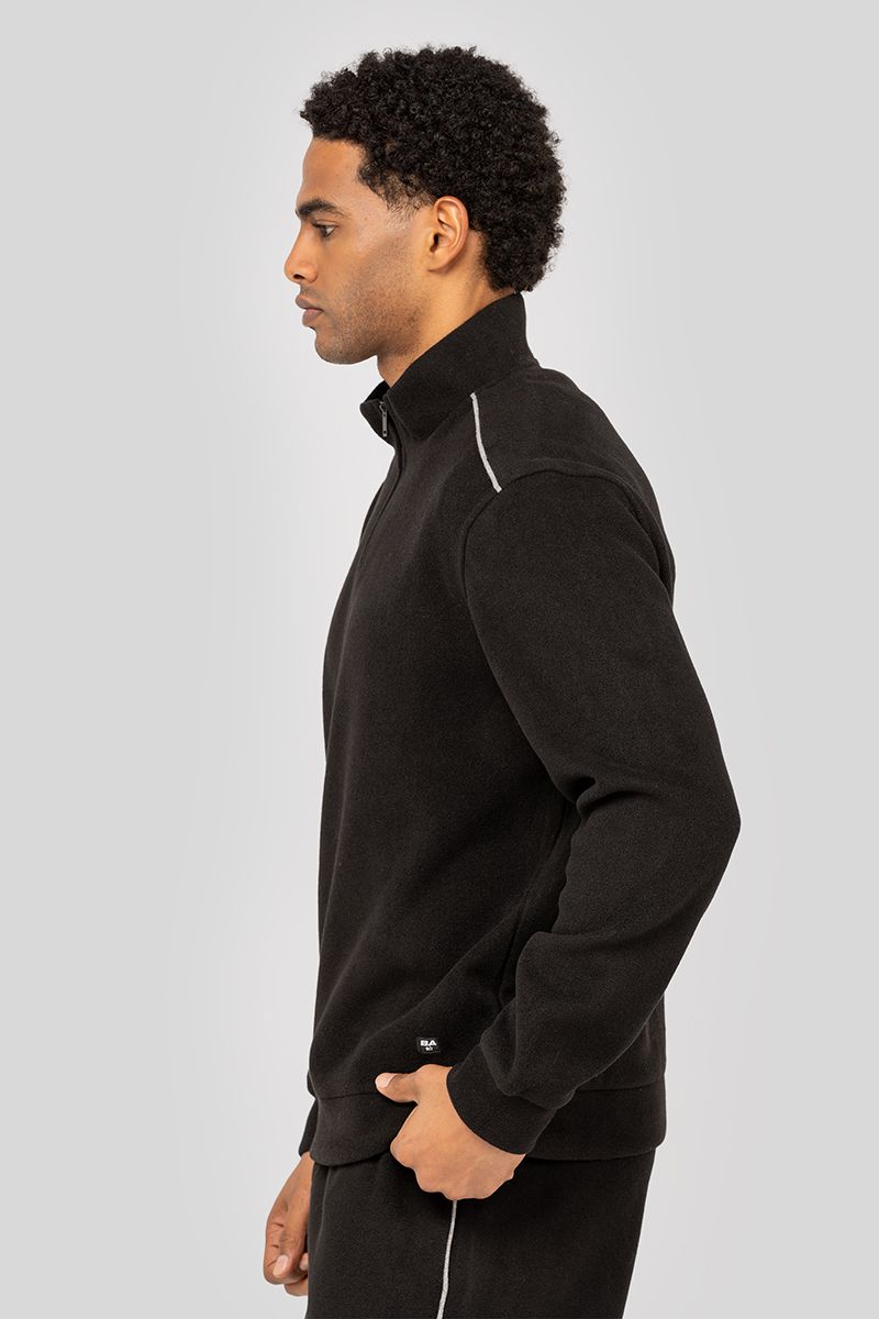 سويتر رجالي بتصميم عصري بياقة مرتفعة مع سحاب نصف أمامي يمنح لمسة عملية وعصرية مصنوع من قماش ناعم يوفر الدفء والراحة مع تفاصيل بارزة على الأكتاف مثالي للتنسيق مع الجينز أو البناطيل الكاجوال لإطلالة أنيقة يومية