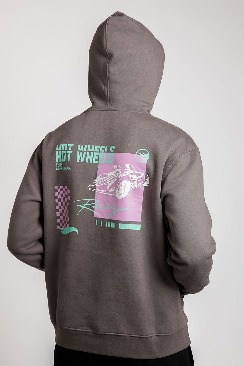 سويت شيرت هودي رجالي بتصميم هوت ويلز مع طبعات مميزة على الأمام والخلف مصنوع بقصة مريحة وقبعة بحبال قابلة للتعديل لإطلالة عصرية مريحة