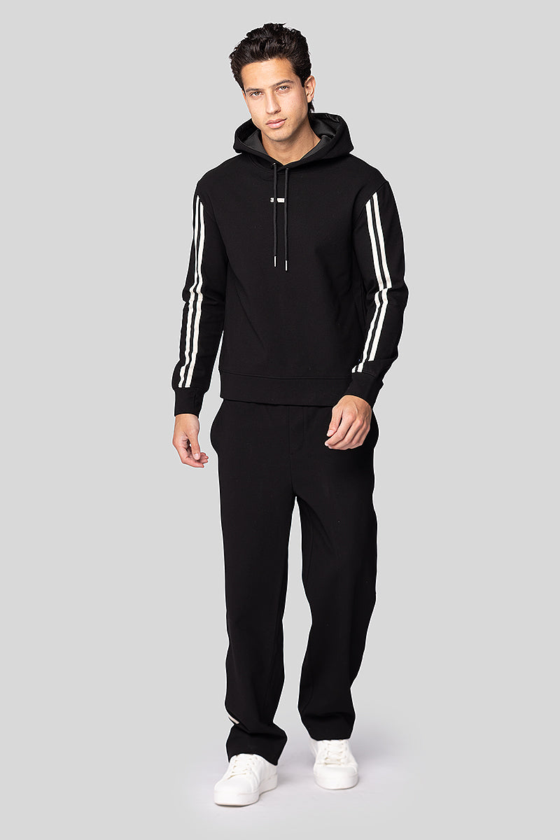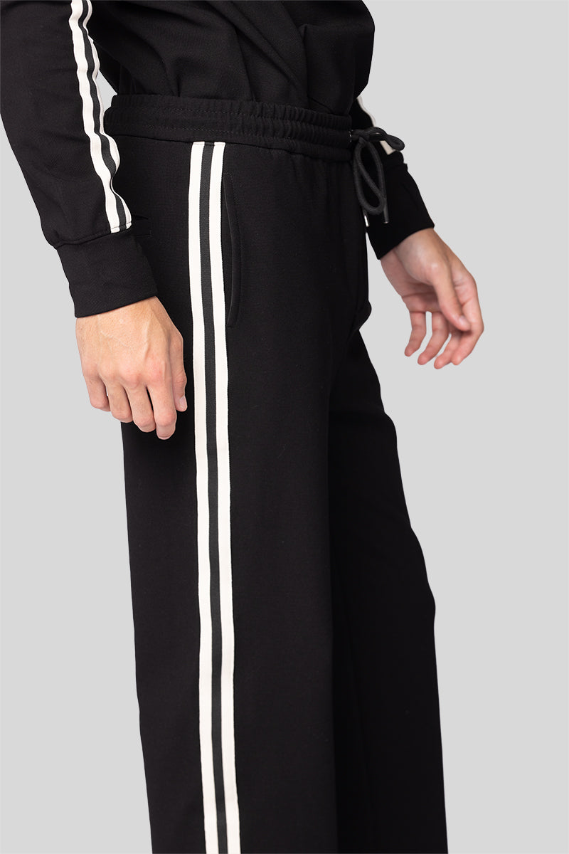 بنطلون رياضي رجالي بلمسة عصرية يتميز بخطوط جانبية تضيف طابعًا أنيقًا تصميم مريح بخامة ناعمة وخفيفة مع خصر مطاطي برباط قابل للتعديل يوفر حرية حركة عملية مثالية للإطلالات اليومية والكاجوال