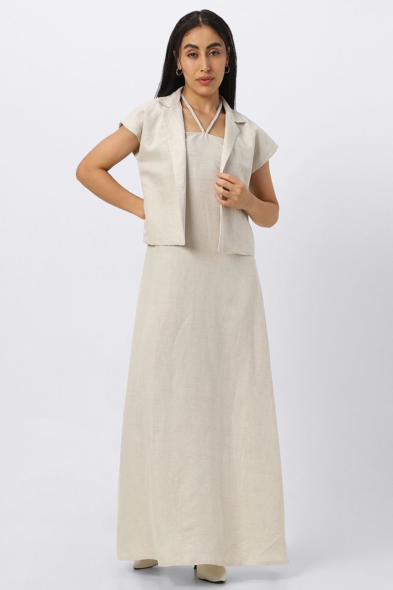 فستان نسائي ماكسي بطبقة جاكيت قصير